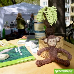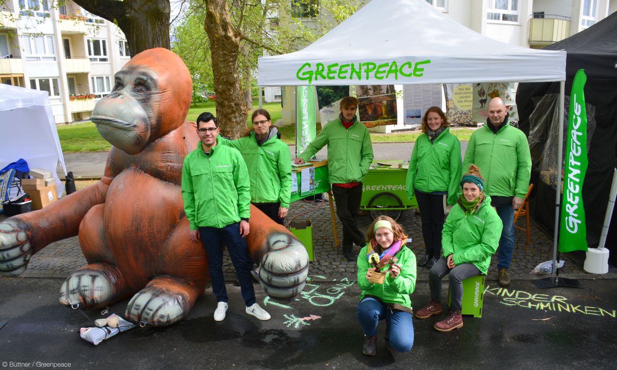 Mit einem riesigen Orang-Utan am Infostand informierte Greenpeace Kassel dieses Jahr über