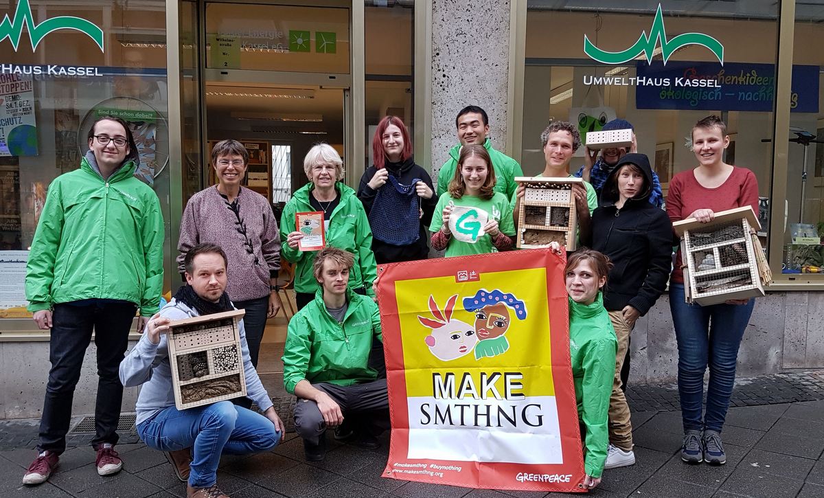 In Kassel haben wir gemeinsam mit Essbare Stadt Insektenhäuser gebaut. Bei unserem Häkelworkshop wurde gezeigt, wie man Mustertopflappen machen kann, Einkaufsnetze oder waschbare Abschminkpads häkelt. Außerdem haben wir Wachstucher selber gemacht – eine tolle Alternative zur Alu- oder Frischhaltefolie.Die MAKE SMTHNG Week 2018 ist eine globale Aktionswoche mit über 200 Events in 30 Ländern. In Deutschland findet das partnerschaftliche Projekt von Greenpeace, Fashion Revolution, break free from plastic, Shareable, Fab Lab, The Restart Project und Arts Thread ab dem 24. November 2018 in 50 Städten statt.