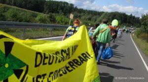 Als Zeichen des Protests gegen die geplante Erweiterung des Braunkohle-Tagebaus in der Lausitz verbanden 7.500 Kohle-Gegner die beiden Grenzorte.