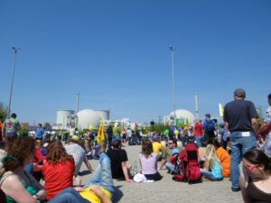 Neben unserer Gruppe waren auch einige andere Greenpeace-Gruppen der Region dort, außerdem waren Atomkraft-Gegner von „ausgestrahlt“, Attac, den Grünen, der Linken, der SPD und viele andere gekommen. Nach einigen Reden und Kundgebungen wurde das AKW dann umzingelt.