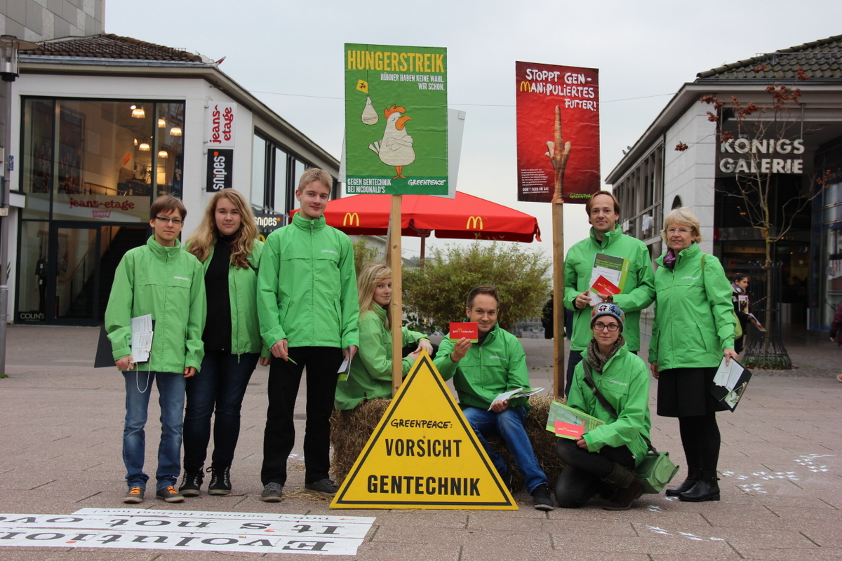 Wir wollen Burger und Mc Nuggets ohne Gentechnik, deshalb standen wir heute vor der Kasseler Mc Donald’s Filiale in der Treppenstraße.