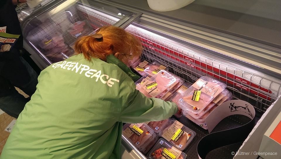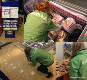 Greenpeace-Aktivisten kennzeichneten in der Lidl-Filiale in der Frankfurter Straße in Kassel, Geflügel-Produkte und Eier mit dem Hinweis „Achtung! Bald mit Gen-Futter?“. Die Aktion sollte darauf aufmerksam machen, dass Geflügel ab sofort wieder mit Gen-Soja gefüttert wird.