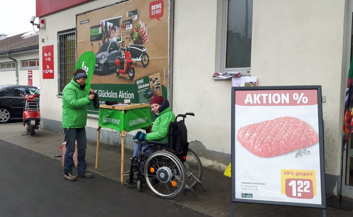 Am 25.01.2020 hatte Greenpeace Kassel vor dem REWE-Markt am Westring über die Haltungsformen, Kennzeichnung und die Forderungen von Greenpeace informiert. Der Infostand in Kassel war Teil eines bundesweiten Aktionstages.