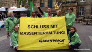 Mit einem Infostand und anschließendem Marsch durch die Innenstadt hatten wir zusammen mit der Albert-Schweizer-Stiftung, White-Paw und vchangemaker auf die Zustände der Massentierhaltung aufmerksam gemacht.