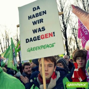 Zusammen mit Greenpeace Marburg, der Aktionsgemeinschaft Agrarwende Nordhessen, Arbeitsgemeinschaft für bäuerliche Landwirtschaft Witzenhausen, dem Umwelthaus Kassel e.V. und einigen Menschen aus Kassel und Marburg, sind wir heute für eine klimaschonendere Landwirtschaft und gesundes Essen in Berlin auf die Straße gegangen.